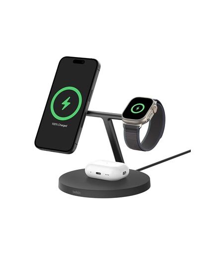 Belkin 3-in-1 Qi2 15W charging stand Apple Watch fast charge - Black