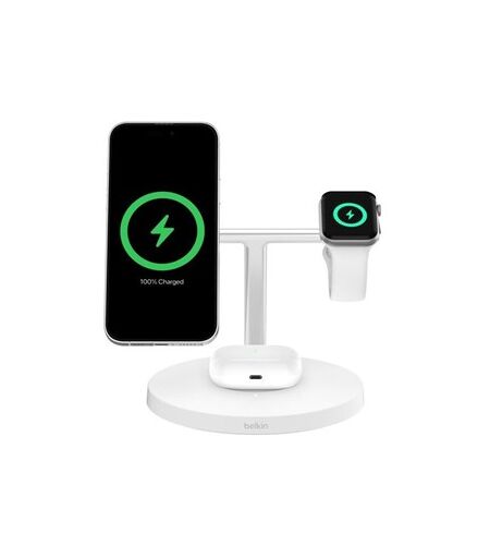 Belkin 3-in-1 Qi2 15W charging stand Apple Watch fast charge - White