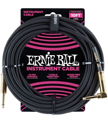 Ernie Ball P06081 10ft Straight-Angle Braided Cable Black/Gold
