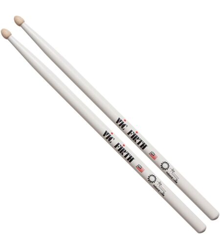 Vic Firth Thomas Lang Signature Drumsticks har et stort skaft og overdimensjonert dråpeformet spiss designet spesielt for høye klare riller - perfekt for pop rock og tyngre musikkstiler. Med en hvitmalt finish og Thomas Langs signature sørger den tykke pinnen enn gjennomsnittet for at du blir hørt så godt som sett. Den overdimensjonerte tåre-tippespissen skaper fyldige store og konsistente toner på trommer mens den utfører nesten den motsatte funksjonen på cymbaler med definerte toner og artikulerte klokker. Hvert par er kvalitetssikret etter Vic Firth tid som investerte produksjonsprosesser og laget av den perfekte amerikanske hickory. ...