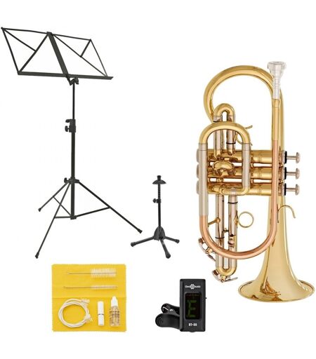 Har du alltid ønsket å lære kornett? Med Elkhart 100CR studentkornett kan du nå - uten å bryte banken! Elkhart-kornetten tilbyr en fantastisk byggekvalitet og en strålende finish og tilbyr alt en nybegynner trenger. Elkhart er en del av Vincent Bach Instruments - selskapet som gjør den verdensberømte Stradivarius trompeter. Så du vet at denne kornetten er bygget for å vare. I motsetning til andre kornetter til denne prisen har Elkhart 100CR kornett en ledningsrør i rose messing for å sikre at tonen din alltid er behagelig og glatt. Takket være den fantastiske byggkvaliteten og den attraktive prisen er Elkhart 100CR kornett et fantastisk instrument som passer perfekt både for skoler og messingband. Og for å sikre at du kan trene med en gang kommer Elkhart-kornetten med et ryggsekk-stil etui og munnstykke. ...