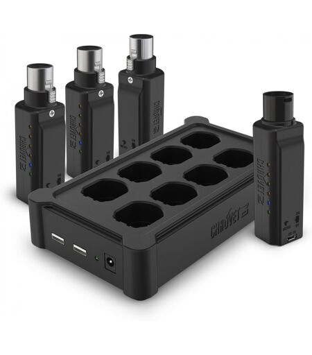 Chauvet D-Fi XLR Wireless Dongle Pack konverterer raskt dine ikke-trådløse lys til et fullstendig trådløst system. Bare koble til XLR-porten så er du i gang. Dette trådløse DMX-systemet gir deg friheten til å lage fantastiske lysshow. Både sender og mottaker har en batterilevetid på opptil 11 timer. Det betyr at du kan bruke lysene hele natten med bare én lading. Lad opp enhetene dine på en gang med den medfølgende dokken. Alt er enkelt takket være de kabelfrie kontaktpinnene. Ingen rot. Ikke noe stress. ...