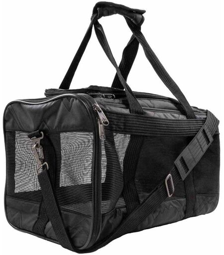 Sherpa Deluxe Transportveske - SvartSherpa transportveske i en praktisk modell, som også kan brukes ved flyreiser.Vesken inngår i Guaranteed On-Board-programmet, som sikrer at den aksepteres av de største flyselskapene i USA og Canada.Vesken har topp- og sideåpninger med låsbare glidelåser for rask og sikker lasting.Tre sider i netting gir optimal ventilasjon, og toppvinduer gjør at kjæledyret kan se eieren, noe som kan redusere reiseangst.Det vaskbare, myke fôret i imitert lammeskinn gir komfort og stabilitet under reisen.Tre måter å bære på - justerbar skulderrem, bærehåndtak og bagasjehylse gjør vesken enkel å bære, eller feste til et bagasjehåndtak.Innebygd glidelåslomme og... ...