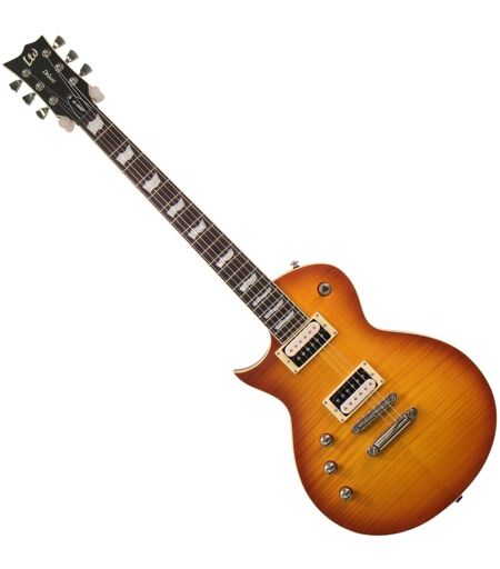 Eks-demo Dette instrumentet kan vise lette tegn på bruk. Det har blitt kvalitetssjekket av vårt team av reparasjonsteknikere for å sikre at det oppfyller en høy spillestandard. Eventuelt reklamemateriell tilbud programvare eller abonnementer som er tilgjengelig ved kjøp som nytt er kanskje ikke tilgjengelig med dette Ex-Demo-produktet. Et klassisk LTD-design. Kombinert med banebrytende Fishman pickuper. EC-1000T (venstrehendt) leverer de ikoniske rock n roll-lydene fra slutten av 50- og 60-tallet. De aktive humbuckerne i PAF-stil har en unik design for å levere de mest autentiske lydene helt uforstyrret. Hver pickup har tre voicings som går fra vintage PAF-lyden til Hot Rod-lyden.Disse pickupene komplimenterer en klassisk enkeltskåret kropp. Den er laget av mahogni (med vektavlastning) og toppet med en flamed maple cap. Den tredelte mahognihalsen er utført som en Thin U noe som gjør det litt enklere å spille raskere. Du finner også et ebony gripebrett som går videre til en headstock med låsbare LTD-tunere. En skikkelig rock ?n? roll-maskin. ...