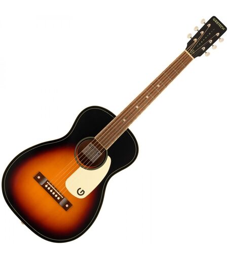 Gretsch Jim Dandy Parlour er en hyllest til den historiske "Rex"-serien av instrumenter som var populære på 1930- 40- og 50-tallet. Denne modellen er inspirert av de ikoniske flat-top-gitarene og kombinerer vintage sjarm med eksepsjonell spillbarhet og førsteklasses tone. Jim Dandy Parlour har en kompakt konsertform og en kortere skalalengde på 2475" noe som gir en perfekt balanse mellom allsidig klang og lett spillbarhet. Den er laget av lette laminat-tontre og X-bracing og byr på en herlig blanding av vintage tonalitet og slitesterk konstruksjon. Den komfortable C-formede halsen gir deg timevis med inspirasjon til å spille gammeldagse låter. Med tidstypiske detaljer som en bro i vintage-stil en "G"-grafisk pickguard malte nålestriper og overdimensjonerte punktinnlegg på gripebrettet utstråler dette instrumentet en nostalgisk personlighet som er perfekt for avslappet klimpring på verandaen og klassiske jazzopptredener på scene. ...