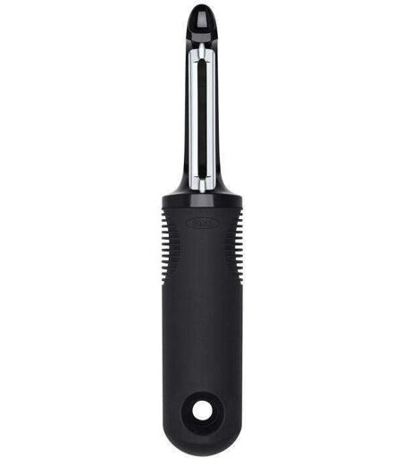 OXO Potetskreller med groe fjerner og godt grep Tåler oppvaskmaskin Håndtakslengde: 10 cm Total lengde: 19 cm Farge: Sort Materiale: Handtak er av plast øvrig rustfritt stål Vekt: ca. 80g ...