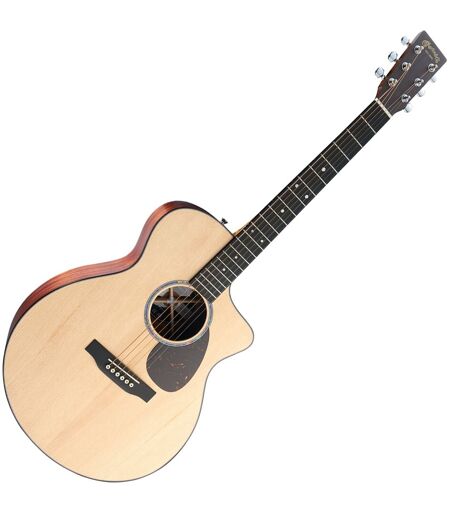 Martin SC-10E Satin er en moderne akustisk-elektrisk gitar som er bygget for komfort klarhet og scene-klar ytelse. Med den revolusjonerende SC-kroppsformen og Sure Align-halssystemet får du full tilgang til alle bånd og en naturlig rask spillefølelse noe som gjør den ideell for ekspressivt spill over hele halsen. Den massive grantoppen og den massive sapele-bunnen og -sidene gir en balansert tone med skarp artikulasjon og varme mellomtoner. Med satinfinish med diskret svart binding en plukkbeskyttelse i imitert skilpadde og en medfølgende softshell-koffert er dette en elegant og allsidig følgesvenn for live konserter studioarbeid eller hjemmeøkter. ...
