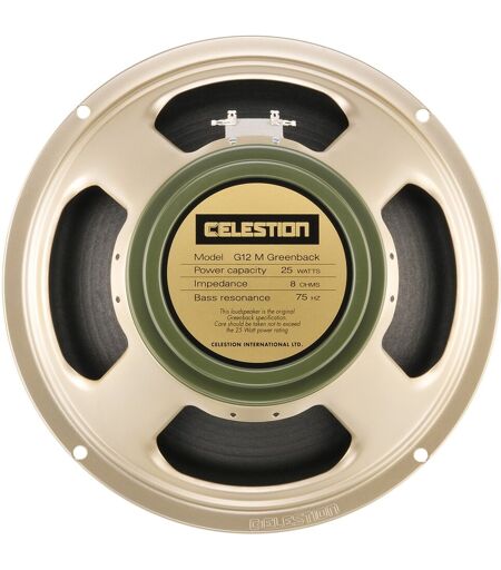 En klassisk ettertraktet tone. Celestion G12M Greenback 16 Ohm har selv blitt favorisert av den legendariske Angus Young siden de tidlige dagene av AC / DC. G12M skrik ut en punchy tilnærming til akkorder mens searing fører er projisert tydelig uten fuzz og buzz. Det er også i stand til å projisere et bredt mellomrom med en begrenset topp-end. Høyttalerens low-end er utrolig kontrollert perfekt til engangsbruk i forsterkere med lavt strømforbruk eller bare bruk i multipler for en stor rik og ikonisk lyd. Ta med definisjon og kjøre til live oppsett og lage klassiske knase til Greenback skitne distortion med letthet. ...