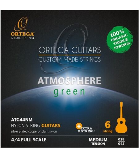 Et revolusjonerende skritt. Det er på tide å bli grønn . Ortega Atmosphere Nylon Strings tar et enormt sprang for å beskytte vår elskede planet. Disse atmosfære strengene kommer helt fra det nydelige landet Italia og erstatter de vanlige oljebaserte diskantstrengene med et nyutviklet plantebasert materiale. Og for første gang noensinne kan du spille den miljøvennlige måten. Uten å ofre den virkelig særegne nylonstrengetonen. Som standard nylonstrenger er disse Ortega Atmosphere strengene ypperlig komfortable å spille. Og de satte virkelig musikkbransjen milepæl for å beskytte miljøet. I tillegg vil du bli begeistret for å høre at under produksjonsprosessen ble Ortegas karbonutslipp redusert med 50% - renere grønnere spektakulær. Dette nye materialet tilbyr ikke bare komfort og pålitelighet men leverer en søt sonisk kombinasjon av lysstyrke og varme med en punchy holdning. Du kan også utforske nøyaktig intonasjon med virkelig behagelig projeksjon. Klar til å ta ett skritt mot en bedre planet? Gjør det med Ortega. ...