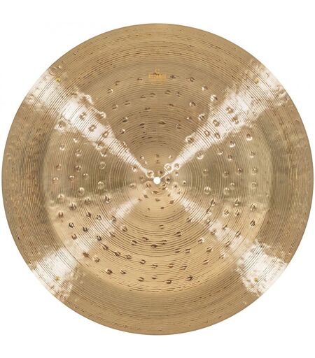 Meinl 22" Byzance Foundry Reserve China Ride er et eksepsjonelt tillegg til enhver trommeslagers arsenal. Cymbalen er laget av B20 bronselegering og er omhyggelig håndhamret for å skape en helt unik og fengslende lyd. Med sin tynne vekt gir Byzance Foundry China Ride den artikulerte klangen som China rides er kjent for. Men ikke la deg lure av den delikate karakteren for denne cymbalen åpner lett opp for et kraftig brøl takket være den store størrelsen og den komplekse håndhamringen. Tilsetningen av fire nagler gir akkurat den rette mengden sizzle perfekt for langvarige crash aksenter. Hvis du vil ha enda mer allsidighet kan du prøve å spille på denne cymbalen med en klubbe for å åpne opp en helt ny klangdimensjon. Denne cymbalen som er en del av den begrensede Byzance Foundry Reserve-kolleksjonen er ikke bare klangrik men også visuelt slående. Den ekstra hamringen skaper dype kratere på overflaten noe som gir den et unikt utseende. Kombinert med den helt dreide toppen og bunnen gir cymbalen en klar tørr stick-attack-tone over en frodig seng av dype undertoner - også kjent som "brølet". Meinl 22" Byzance Foundry Reserve China Ride er ideell for fusion studio R&B; funk og jazz og har en kompleks og mørk karakter. Den middels til korte sustainen det lave volumet og den mellommørke klangfargen gjør den til et allsidig valg for trommeslagere som ønsker en unik sound. ...