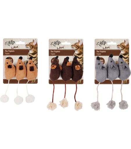 Tre små mus til katten laget av slitesterke materialer. Musene inneholder kattemynte, noe som gjør leken enda morsommere for katten din. Musene har en lang hale som ender i en luftig ball. Musene selges usortert i trepakninger i fargene lys brun, mørkebrun og grå. Størrelse: 7x7x3 cm.Inneholder kattemynte.Selges usortert.Selges i 3-pakninger. ...