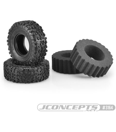 the jconcepts designers have opened up the imagination to create an all-new class 1, 1.9” performance scale tire. the landmines, developed over a 2-year period of testing, tuning and analysis have reached the summit and now available to the crawling enthusiast. the design starts with a robust carcass carefully shaped and sized for a multitude of conditions and capable of completing those difficult courses while being down-to-earth enough to carry a scale appearance. the team spent considerable time with the split-block center design which has been sliced, stepped, and recessed for flexibility and contortion over sharp, loose, and polished surfaces. the landmines have alternating solid and cavity pads which is ideal for transitioning from smooth dirt or pavement into dirt, mud, and rocky terrain. moving toward the edges of the carcass, the scaling tire has horizontal grippy pads with edge and channels to provide additional forward climbing bite. down within the tread, a lightning pattern, knob plots and connector bars pull the design together to work together at shallow and deep sinking positions. once power is applied to the vehicle, the tread spacing opens which allows for deep digging, making it a great working tire in dirt and muddy conditions. as the tread rolls down the sidewall, a whole new course of tread and side-lugging is applied. a grippy radial ring provides a consistent rubber contact patch in pinched conditions while in the vertical plane, new traction bars alternate between angular and island mapping for squeeze grip. the flexibility of the green compound combined with the lug arrangement gives the tire a grippy feel but still maintains that all important scale and performance look. the 4.19” overall height provides plenty of ground clearance for an abundance of terrain and bossed side-wall logos read with beauty and balance. the tires include a medium, spiked open cell foam insert capable of standing up to the super soft compound but flexible enough for sharp terrain. battlefield, watch-out, landmines are taking over. features: class 1, robust carcass, split-block design, 1:1 inspired 106mm 4.19” overall size without insert sliced, stepped, and recessed lugs for contortion control super soft, green compound lightning pattern, knob plots and connector bars for extra edges radial sidewall lugs and extra island mapping for squeeze grip includes medium, spiked open cell insert ...