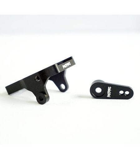 fully cnc'd aluminum mount and horn for the trx4m *horn now comes with m2.5 threaded holes. comes with mount, horn, and all hardware m2 x 6mm for securing the horn onto the servo m2.5 x 8mm for attaching the steering link to the horn two m2.5 x 4mm to secure the servo to the mount m2.5 x 20mm to affix the mount to the axle fits our rs100 micro servo and many other of the slightly larger than stock 1/24 aftermarket servos not only does this solid aluminum mount remove the flex and play from the stock setup, it also tilts the servo slightly forward so that the horn properly aligns with the steering link. horn has a 25t 4.9mm micro spline ...