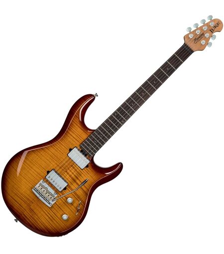 Sterling by Music Man Luke med Flame Maple Hazel Burst-finish er en rimelig utgave av Music Mans signature Luke III-gitar - bygget for studiolegenden Steve Lukather. Sterling Luke er designet for et stort spekter av toner og god spillbarhet og er den ultimate spillergitaren - perfekt for musikere som spiller i et bredt spekter av sjangre og med mange forskjellige toner. Luke er behagelig å spille på takket være den mykt konturerte basswood-kroppen det lavprofilerte halsleddet de dype korpusutskjæringene og den klassiske "V"-formede halsprofilen. For å matche den uhindret spillbarheten er Luke utstyrt med to Sterling by Music Man -designede humbuckere sammen med en 5-veis bryter for et stort utvalg av toner inkludert kraftige humbucker -toner og nyanserte single-coil "mellomtoner" som dekker alle sjangre. Gitaren har også en push-push 12 dB boost-bryter for å ta tonen til neste nivå under soloer. Med maskinvare av høy kvalitet inkludert låsbare tunere dual action truss rod og stabil 2-punkts flytende tremolo er Sterling by Music Man Luke den ultimate allrounderen og et kraftfullt studio- eller live fremføringsverktøy for kresne moderne musikere. ...