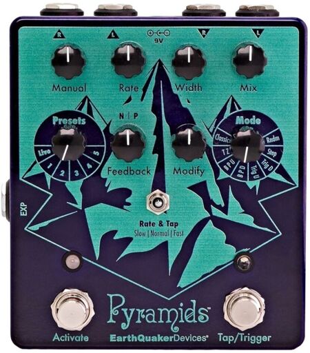 Pyramids Stereo Flanger EarthQuaker Devices Pyramids Stereo Flanger er en kraftig moduleringspedal bygget på en DSP-plattform med høy ytelse og tilbyr åtte flanger-moduser stereodrift og fem forhåndsinnstillinger som kan skrives over av brukeren. Fra klassisk jetfly-swoosh til endeløse Barber Pole-sweeps og rytmiske trigger-baserte effekter den leverer et imponerende utvalg av teksturer med lydkvalitet i studiokvalitet. Tap tempo med underinndelinger en multifunksjonell Modify-kontroll og ekspresjonspedal-kompatibilitet gir deg presis kreativ kontroll mens Mix-knappen lar deg velge akkurat den rette blandingen av våte og tørre signaler. Med stereo I/O fleksibel ruting og Flexi-Switch®-teknologi for momentan eller latching betjening er Pyramids bygget for eventyrlig lydskaping på scene og i studio. ...