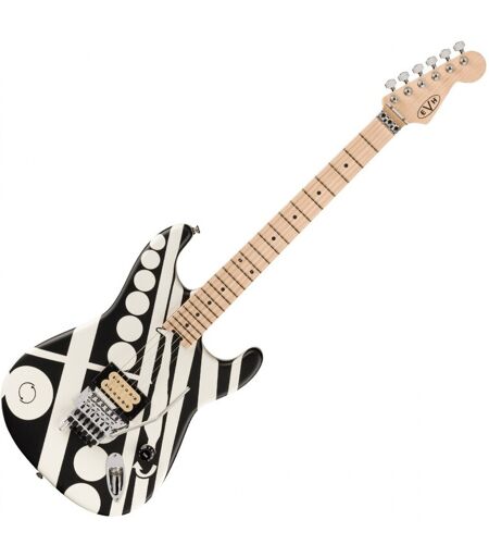 EVH LTD ED ED Striped Series Circles Satin Finish med gigbag er en gitar som hyller heritage av EVHs outrerte gitardesign og samtidig oppdaterer den for et moderne publikum. Den svart-hvite blanke finishen med grafiske "kornsirkler" er virkelig ikke av denne verden og gjør den til en av de mest visuelt slående gitarene i Striped Series -serien. Men ikke la deg lure av det utenomjordiske utseendet denne gitaren handler om høytytende tone. LTD ED Striped Series Circles Satin Finish har en kropp i basswood Stratocaster-stil og alt er fjernet og kun det som EVH brukte på gitarene sine. En enkelt Wolfgang -pickup leverer signature -tonen fra tidlig EVH en umiskjennelig rock and roll-pickup med høy effekt. Det er enkelt å treffe de høye tonene med en EVH-merket Floyd Rose og R3-låsemutter for maksimal stabilitet selv når den blir brukt og misbrukt. Med et enkelt trykk på D-Tuna kan du gå ned til D noe som betyr at du ikke trenger en gitar nummer to på veien for å få tilgang til den lavere stemte riffs i live -settet ditt. Når det gjelder halsen kan den skilte med en grafittforsterket bolt-on-hals i kvartsavsaget lønn med en håndskrubbede oljefinish på baksiden noe som gir overlegen spillbarhet og komfort. Gripebrettet i 12"-16" lønn er utstyrt med 22 jumbobånd og svarte prikkinnlegg noe som gjør det til en fryd å spille. Som prikken over i-en leveres denne eksepsjonelle gitaren med en EVH Striped Series gigbag slik at du kan ta med deg instrumentet overalt. ...