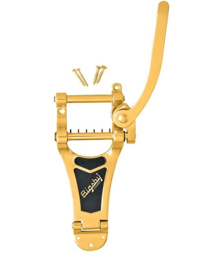 Licenced Bigsby B700G er en gullfinert vibrato-stykkestykke designet for å levere den klassiske Bigsby -følelsen og stilen. Den er basert på det originale B7-designet og har en innebygd strekkstang som øker strengens bruddvinkel over broen noe som bidrar til å forbedre sustain og stemmestabilitet på archtop-gitarer med solid kropp og semi-hollow body. Den støpte aluminiumsrammen og håndtaket i rustfritt stål gir jevn uttrykksfull tonekontroll perfekt for å legge til subtile vibratoeffekter i spillet ditt. Med medfølgende monteringsutstyr og et monteringssystem med seks skruer er dette en oppgradering som gir vintage karakter og moderne pålitelighet. ...