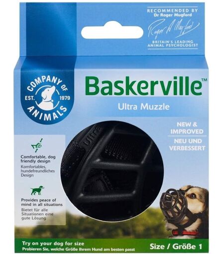 Egenskaper Baskerville Ultra Munkorg er både komfortabel og sikker å bære, laget i slitesterkt materiale som er formet etter nesens form. Finnes i flere størrelser, størrelsesguiden skal ses på som veiledende. Bruk Munnkurv for hund ...