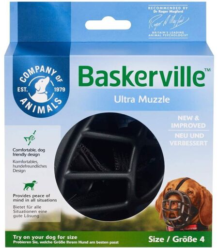 Egenskaper Baskerville Ultra Munkorg er både komfortabel og sikker å bære, laget i slitesterkt materiale som er formet etter nesens form. Finnes i flere størrelser, størrelsesguiden skal ses på som veiledende. Bruk Munnkurv for hund ...