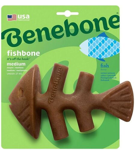 Benebone Fiskebein i Nylon med Smak av Laks Benebone Fishbone er en slitesterk tyggeleke i nylon for hunder, laget med ekte laksesmak for å gi en engasjerende og svært langvarig tyggeopplevelse! Den nydelige laksesmaken gjør leken ekstra lokkende og trigger hundens tyggeadferd. Hunder har generelt et stort tyggebehov, og Benebone bidrar til å holde tennene rene ved å fjerne plakk og forebygge tannstein, samtidig som hunden ikke får i seg ekstra kalorier! Dette kan derfor være en god løsning for hunder som lider av overvekt. Å tygge på leken bidrar også til å frigjøre energi og redusere stress hos hunden. Det ergonomiske designet gjør leken enkel å holde med potene, og materialet er laget for å tåle intensiv og langvarig bruk. Slitesterk tyggeleke i nylon med laksesmak Designet for sterke tyggere – Laget i USA Du må alltid holde hunden din under oppsikt når den leker med leken Holdbarhet i 1–2 måneder Størrelsesanbefaling: S: Jack Russell-terrier, dachs M: Australsk gjeterhund, labradoodle L: Labrador retriever, dalmatiner XL/Giant: Grand danois, mastiff Bytt ut tyggeleken når den begynner å miste formen – Merk: Egner seg ikke for husholdninger med nøtteallergikere ...