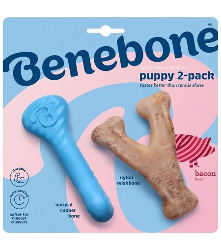 Benebone Gummibein & Wishbone Tyggeleker For Valp 2-Pakning