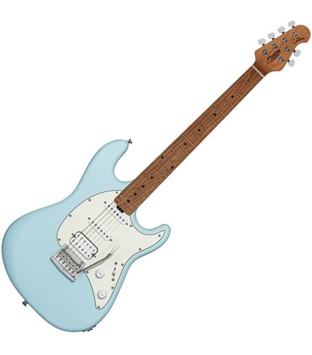 CT50HSS Sterling Cutlass CT50HSS er en elegant moderne gitar med en allsidig HSS-pickupkonfigurasjon og en slående Daphne Blue satinfinish. Den har en hals i røstet lønn som gir en jevn spillefølelse og ekstra holdbarhet mens låsbare tunere sørger for raske strengeskift og pålitelig stemmestabilitet. Denne gitaren er utstyrt med en tremolo i vintage-stil og en overdimensjonert 4+2 headstock for perfekt justering av strengene og leverer både stil og ytelse. Med 5-veis pickupvelger kan du enkelt bytte mellom skarpe single-coil-toner og kraftige humbucker -lyder noe som gjør den klar for alle sjangre. ...