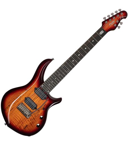 Sterling Majesty MAJ270X Spalted Maple Blood Orange Burst er en slående 7-strengs designet i nært samarbeid med John Petrucci som blander dristig utseende med profesjonell spillbarhet. Med sin spalted maple finertopp i en levende Blood Orange Burst finish gir den en moderne estetikk som skiller seg ut på enhver scene. Utstyrt med DiMarzio LiquiFire- og Crunch Lab-pickuper et ebony gripebrett og bånd i rustfritt stål gir denne Majesty en følelse og tone som er bygget for krevende spillere. Legg til en push/push-volumforsterker en smidig moderne tremolo og låsbare tunere og du har en gitar som er klar til å håndtere både presisjonsarbeid i studio og tung turnévirksomhet. ...