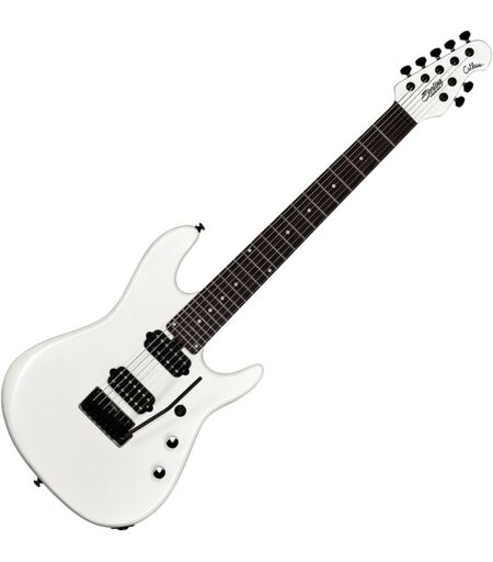Sterling Richardson 7 in Pearl White er en elegant og kraftig 7-strengs gitar bygget for å matche kravene til Jason Richardson sin intense spillestil. Med en lett kropp i or og et spesialkonturert nedre horn er den designet for maksimal komfort og enkel tilgang til alle 24 båndene. Den ristede lønnehalsen kombinert med et gripebrett i rosentre gir en myk følelse under fingrene mens det utvidede spekteret åpner døren til komplekse akkorder og knusende riffs. Det er en gitar som ser ut som sharp og føles bygget for fart men som likevel har solid resonans og sustain. Det er når det gjelder toneforming at Richardson 7 virkelig skiller seg ut. Den er utstyrt med et par artist-humbuckere med høy effekt og leverer en tung artikulert lyd med masse definisjon. Legg til push-push coil split for skarpe single-coil-toner og push-push volumboost for et øyeblikkelig 12 dB løft og du har et allsidig våpen som er klart for scene eller studioet. Låsbare tunere og en moderne tremolo sørger for stabilitet slik at du kan gi alt du har i hendene uten å bekymre deg for at stemmingen skal glippe eller at det går på bekostning av klangen. ...
