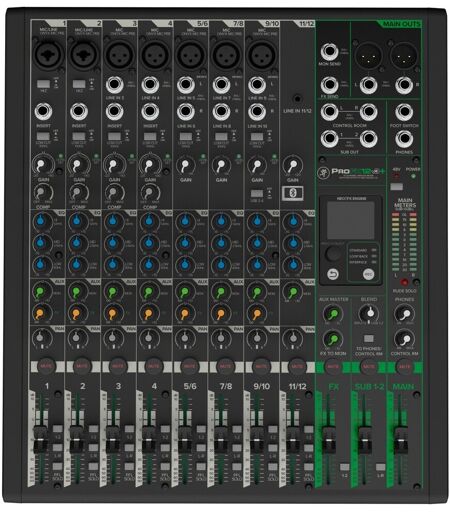 Mackie ProFX12v3+ Analog Mixer er en kompakt 12-kanals mikser som kombinerer funksjonaliteten til en mikser og et lydgrensesnitt. Denne kraftige enheten er designet som en studioinnspillingskonsoll og gjør det mulig å strømme spille inn og lage musikk av profesjonell kvalitet. ProFX12v3+ er utstyrt med en rekke viktige funksjoner inkludert kompresjon med én knapp 3-bånds EQ Hi-Z-brytere low-cut-filter og FX- og undergruppebusser og sørger for at du har alle verktøyene du trenger for å finjustere lyden. Enten du er musiker podcaster eller innholdsskaper er denne mikseren det perfekte midtpunktet i det kreative rommet ditt. Men ProFX12v3+ stopper ikke der. Den fungerer også som et USB-C-lydgrensesnitt slik at du kan koble instrumenter mikrofoner og andre lydenheter direkte til datamaskinen. Med de oppgraderte GigFX+-effektene og fargeskjermen kan du forbedre lyden og enkelt redigere og lagre forhåndsinnstillinger underveis. Denne kompakte analoge mikseren har fleksible opptaksmuligheter slik at du kan spore opptredenen din med eller uten effekter. Du kan til og med bruke loopback-modus til å strømme videospill eller spille over backingspor uten feedback. Og for ekstra bekvemmelighet har ProFX12v3+ en egen kanal for Bluetooth -tilkobling noe som gjør det enkelt å ta med podcastgjester over telefonen. ...