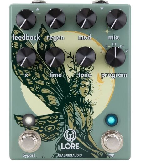 Walrus Audio Lore Reverb / Reverse Soundscape Generator-pedalen er en lydbildegenerator. Med et univers av reverb tilgjengelig gjennom fem forskjellige moduser vil den få deg til å eksperimentere for alltid. Og det er før du i det hele tatt har trykket på kontrollene for tilbakemelding regen mod mix x og tid. Fra å skape et lett ekko til en glitchy all-out reverb vegg går denne pedalen langt langt utover det grunnleggende. Og den har til og med taptempo innebygd for å hjelpe deg med å utøve mesterlig kontroll over effekten. Men det er bare å skrape i overflaten. Noen av kontrollene har en annen funksjon avhengig av hvilken modus du har valgt så det er enda mer rom for soniske eksperimenter. Denne modulasjonsmaskinen er designet for å skape gigantiske lydlandskap – og det er akkurat det den gjør. Forvent intet mindre enn total undring og forundring når du tråkker på fotbryteren for første gang. ...