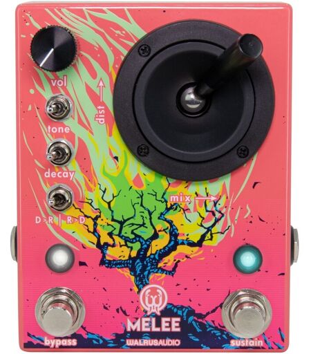 Walrus Audio Melee Wall of Noise Reverb /Distortion er en pedal som blander to universer av lyd til ett. De sier reverb og forvrengning går sammen som en lås og nøkkel og begge er avgjørende for å skape en enorm skitten tone. Denne pedalen har blitt sendt fra dypet for å gi deg en enorm vegg av lyd som kombinerer disse to grunnleggende effektene til én. Den unike joystick-kontrollen gir deg uovertruffen kontroll over måten de blandes sammen mens Volum- Tone- og Decay-hjul lar deg lage stemmen din perfekt med presisjon. Du kan få riffs dine til å høres supertighte ut eller helt hule. Men moroa stopper ikke der. AD>R/R>D-skiven bestemmer om Distortion eller Reverb plasseres først i signalkjeden. Som enhver erfaren musiker vil vite kan det ha en enorm effekt på tonen din og gi deg enda flere soniske verktøy i arsenal ditt. Med tre forskjellige typer reverb bestående av Ambient Octave Down og Reverse (med tilbakemelding) vil du også ha massevis av teksturer å leke med. ...