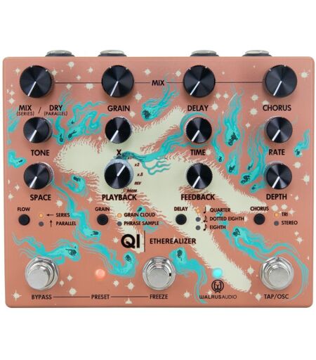 Qi Etherealizer Walrus Audio Qi Etherealizer er en multieffektpedal som blander chorus delay granulat-effekter og reverb til et inspirerende verktøy for å skape frodige atmosfæriske lydlandskaper. Pedalen er utviklet i samarbeid med Yvette Young og den fanger opp hennes kunstneriske visjon og leverer et dynamisk utvalg av teksturer og lag. Med Qi kan du eksperimentere med ulike effektkombinasjoner kjøre dem i serie eller parallelt noe som gir deg uendelige muligheter til å forme lyden din. Hjertet i Qi er den avanserte MDSP-plattformen som gir høykvalitets lydprosessering med eksepsjonell klarhet og ytelse. De intuitive kontrollene gjør det enkelt å skape oppslukende toner fra subtil modulering til ekspansive ambient wash. Med stereoruting flere effektmoduser og MIDI-kompatibilitet åpner Qi Etherealizer opp for nye kreative muligheter slik at du kan utforske og finpusse din egen lydidentitet. ...
