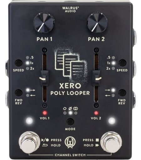 Xero Polylooper Walrus Audio Xero Polylooper Stereo / Dual Looper Pedal er en kraftig tokanals looper designet for kreativ looping komposisjon og live performance. Med helt uavhengig kontroll over hver kanal kan du legge lag på lag med intrikate teksturer panorere i stereo og manipulere avspillingshastighet eller -retning - alt i sanntid. Hver sløyfe har opptil tre minutters opptakstid med ubegrenset overdubbing noe som gir deg frihet til å eksperimentere uten grenser. Bytt mellom synkronisert usynkronisert og poly-modus for å matche din looping-stil fra låste grooves til polyrytmiske fraser. Stomp-bevegelser gjør betjeningen intuitiv på scene mens flerfargede lysdioder holder deg visuelt oppdatert på statusen til hver loop. Innebygd MIDI og USB-C sørger for smidig integrering i moderne rigger og ekte bypass Sustainr signalveien når den er inaktiv. ...