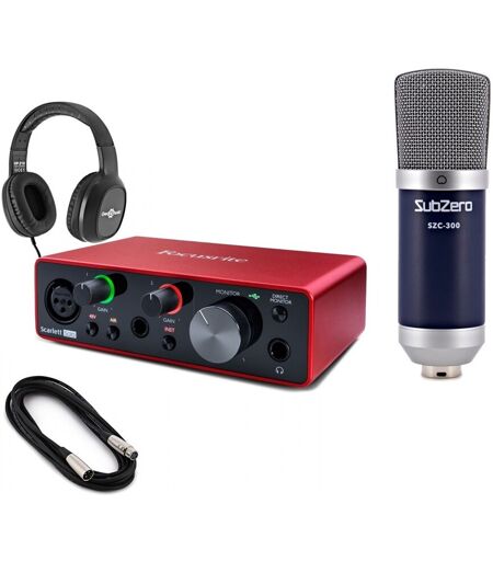 Focusrite Scarlett Solo (3rd Gen) Vocal Recording Pack er en alt-i-ett-innspillingspakke - ideell for vokalopptak podcasting og mye mer. Denne pakken består av lydgrensesnittet Scarlett Solo (3. generasjon) kondensatormikrofonen SZC-300 et par stereohodetelefoner og en XLR-kabel og er ideell for både hjemmeoppsett og profesjonelle på farten. Focusrite Scarlett Solo (3. generasjon) er tredje generasjon av den populære Scarlett-serien med en 2-inn/2-ut-konfigurasjon og Air-aktiverte mikrofonforforforsterkere. Scarlett Solo (3. generasjon) er et av de rimeligste grensesnittene på markedet med den beste lyden fra Scarlett-forforsterkerne til dags dato. Grensesnittet har klasseledende 24-biters/192 kHz AD-DA-omformere som leverer uberørt lydkvalitet. Det har alt du trenger for å spille inn vokal og instrumenter inkludert innebygd Phantom Power for bruk med kondensatormikrofoner. ...