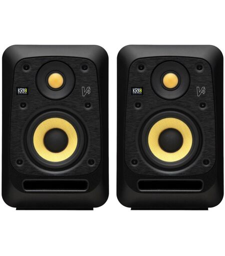 KRK V4S4 Studio Monitors er laget for produsenter ingeniører og miksere som trenger ren nøyaktig lyd i trange rom. Med en 4-tommers Kevlar-diskant og en 1-tommers Kevlar-dome-diskant leverer de kontrollerte lave toner jevne mellomtoner og skarpe høye toner noe som gir deg en balansert lyd som holder seg på tvers av avspillingssystemer. Den 85 W bi-ampede klasse D-designen støtter høyt takhøyde og rask transientrespons noe som gjør det enkelt å høre fine detaljer under sporing eller miksebeslutninger. V4S4 er bygget for å tilpasse seg ethvert arbeidsområde og har 49 DSP-drevne EQ-forhåndsinnstillinger som hjelper deg med å korrigere romrefleksjoner problemer med bordplassering og personlige preferanser. Den solide frontbaffelen i aluminium gir stabilitet og bidrar til å Sustain nøyaktig avbildning. Med fleksibel I/O og et frontportert kabinett kan du plassere den nær vegger eller hjørner uten at lyden blir forstyrret. Resultatet er en kompakt nearfield -monitor som gir selvtillit i enhver miks. ...