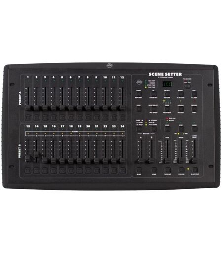 Slank stilig kraftig. Ta lyssettingene dine til neste nivå med ADJ-scenesetter 24. Du kan fritt lage en virkelig oppslukende opplevelse takket være synkroniseringskompatibilitet. Dette lar deg synkronisere scenesetteren med musikk og tåkeutstyr. Du kan sikre total kontroll av oppsettet ditt ved å bruke de 24 justerbare fade barene 4200 programmerbare scenee og 48 forfølgelser hver kryptert med passordbeskyttelse. Velg modus som passer deg best. Scene Setter 24 lar deg gjøre endringer i systemet ditt i enten prosent eller DMX-verdi. Det lyse LED-displayet gjør Scene Setter 24 ideell for bruk i de mørkeste stedene mens den lette designen gir effektiv mobilitet ideell for å turnere eller reise DJ-er og for transport mellom arenaer. ADJ Scene Setter 24 er den ultimate DMX-belysningskontrolleren perfekt for et stort utvalg av belysningsapplikasjoner. ...