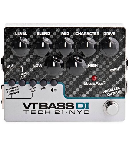 Tech 21 SansAmp Character Series VT Bass DI er en multifunksjonell pedal med flere applikasjoner som har tre utganger. Pedalen kan komplementere den eksisterende riggen din ta opp direkte drive effektforsterkere og gå direkte gjennom PA. Tech 21 VT Bass DI er det perfekte utstyret for den omreisende bassisten som prioriterer enkel tilgang og et enkelt og direkte oppsett. Primært for spillere som liker å bli hørt og være i forkant av miksen tilbyr Tech 21 VT bass DI en rekke toner som gjenskaper den unike vintage -rørvarmen fra en svunnen tid. VT Bass DI har også en blandingskontroll for å justere forholdet mellom direkte signal og Sans Amp Circuitry og en bite-bryter for å aktivere en tilstedeværelsesboost og et subsonisk filter for massive toner som vil skjære gjennom enhver blanding. ...