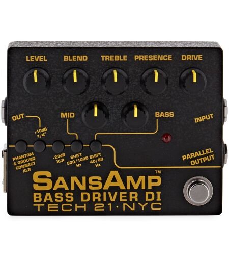Tech 21 SansAmp Bass Driver DI V.2 tilbyr en spesialisert direkte boks for bassgitarer som ikke bare lar deg koble pedaler direkte inn i forsiden av huset men kan også levere store vintage tube-toner lyse moderne slaplyder og gnarly forvrengninger. Med tre forskjellige utganger kan Tech 21 DI kjøre kraftforsterkere opptaksdisker og PA-miksere eller den enkelt brukes til å forbedre din rigg. En serie kontrollere tilbyr tradisjonelle basslyder samtidig som brukeren får muligheten til å endeløst konfigurere tonen for å oppnå en virkelig fantastisk lyd. ...