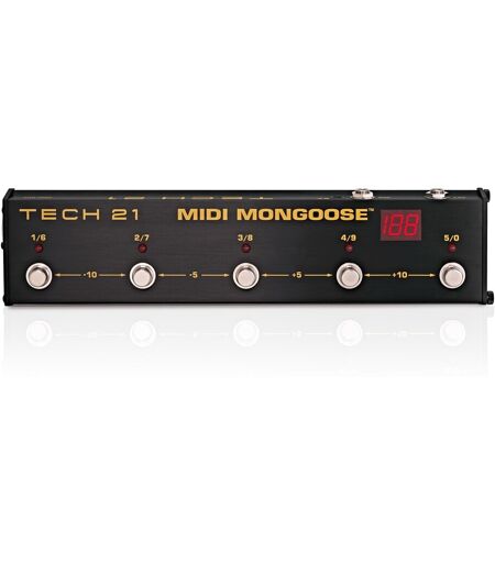 Tech 21 Midi Mongoose Midi Foot Controller tilbyr opptil 128 patcher på noen av de 16 valgbare MIDI-kanalene og et ideelt for scenegir studioer DJ-utstyr og belysning. For en allsidig ytelse tilbyr Mongoose to forskjellige innganger for integrering av andre MIDI-enheter. Utstyrt med fem fotbrytere kan spillerne enkelt velge fem eller ti forhåndsinnstilte programmer om gangen og kontrollere hvilken gruppe effekter eller MIDI-enheter som er aktivert på en gang. Endelig har Mongoose tre strømalternativer inkludert et 9V batteri for 200 timers bruk valgfri strømforsyning og Phantom power via MIDI-kabelen. ...