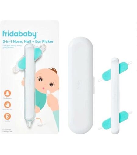 Frida Baby 3-in-1 Nose, Nail + Ear Picker er et alt-i-ett verktøy som gjør det enkelt å holde babyens nese, negler og ører rene. Med fire fleksible tips kan du trygt fjerne buser, ørevoks og annet smuss. ...