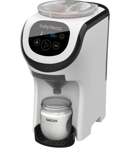 Baby Brezza Formula Pro Mini er en smart enhet som lager en varm og perfekt blandet flaske med morsmelkerstatning på et øyeblikk. Omtrent som en Espressomaskin: Et knappetrykk, og perfekt blandet melk kommer ut! ...