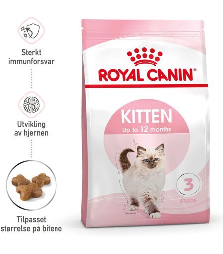 Royal Canin Kitten – Helfôr for kattunger opptil 12 måneder Royal Canin Kitten er et komplett helfôr som støtter kattungens intensive vekst og fremmer helsen i løpet av de første 12 månedene. Fôret inneholder lettfordøyelige proteiner og spesifikke næringsstoffer som bidrar til en velbalansert fordøyelse og et sterkt immunforsvar. Hva er Royal Canin Kitten? Royal Canin Kitten er et helfôr tilpasset for kattunger mellom 4 og 12 måneder. Det gir kattungen all den næringen den trenger for en sunn vekst og utvikling.Fordeler med Royal Canin Kitten: Styrker immunforsvaret: Inneholder antioksidanter som bidrar til å støtte kattungens naturlige forsvar. God fordøyelse: Lettfordøyelige proteiner og spesifikke næringsstoffer støtter en velbalansert mage- og tarmhelse. Sunn vekst: Kombinasjon av lettfordøyelige proteiner, vitaminer og mineraler støtter kattungens skjelett, muskler og energibehov under vekstperioden. Energi for vekst: Tilpasset for å tilfredsstille det høye energibehovet til katten. Vanlige spørsmål om Royal Canin Kitten Her besvarer vi spørsmål om Royal Canin Kitten. Hvor lenge skal jeg gi min kattunge Royal Canin Kitten? Du kan gi Royal Canin Kitten til kattungen til den er 12 måneder gammel. Deretter kan du bytte til et voksenfôr som passer til kattens behov.Passer Royal Canin Kitten til alle kattunger? Ja, Royal Canin Kitten er utformet for kattunger i alle raser og størrelser mellom 4 og 12 måneder.Hvordan styrker Royal Canin Kitten kattungens immunforsvar? Royal Canin Kitten inneholder antioksidanter og spesifikke næringsstoffer som styrker kattungens naturlige forsvar og bidrar til et sterkt immunforsvar.Anbefaling: Følg fôringsanvisningen på forpakningen og tilpass mengden etter kattungens alder, vekt og aktivitetsnivå. Sørg for at kattungen min alltid har tilgang til friskt vann. ...