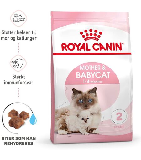 Royal Canin Mother & Babycat – Tørrfôr for kattunger 1–4 måneder og diegivende katter Hva er Royal Canin Mother & Babycat, og hvem passer det for? Royal Canin Mother & Babycat er et tørrfôr som ofte brukes til kattunger fra 1 til 4 måneders alder, samt til diegivende og drektige katter. Fôret er utviklet for å støtte kattungens første vekstfase og samtidig dekke hunnkattens økte energibehov. Fôret egner seg som første faste fôr ved avvenning fra morsmelk. De små fôrkrokettene kan bløtlegges til en grøtlignende konsistens, noe som gjør overgangen til fast føde enklere – både for tyggeevne og væskeinntak. Fordeler med Royal Canin Mother & Babycat: Ved avvenning: Brukes ofte som første faste fôr for kattunger Høyt energinivå: Tilpasset katter med økt energibehov under diegivning og drektighet Immunforsvar: Inneholder E- og C-vitamin som kan bidra til å støtte kattungens naturlige immunforsvar Hjerneutvikling: Omega-3 (DHA) brukes ofte for å støtte nevrologisk utvikling Tarmhelse: Prebiotika og lettfordøyelige proteiner kan bidra til en balansert fordøyelse Når brukes Royal Canin Mother & Babycat? Fôret brukes ofte fra det tidspunkt kattungen begynner å vise interesse for fast føde – vanligvis etter tre uker. Det er spesielt aktuelt mellom uke 4–12, når beskyttelsen fra morsmelken avtar og kattungens immunforsvar og fordøyelse fortsatt er under utvikling. Royal Canin Mother & Babycat er et av de mest brukte fôrene ved avvenning, og er populært blant både oppdrettere og katteeiere som ønsker et tilpasset fôr i kattens mest sensitive vekstfase. ...