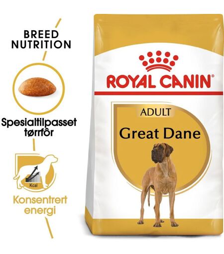 Egenskaper Fôret bidrar til å styrke leddene ved hjelp av en kombinasjon av kondroitin og glukosamin samt EPA og DHA. Dessuten er fôret er beriket med omega-fettsyrer som hjelper med å holde pelsen frisk og blank. Formen, størrelsen og konsistensen stimulerer hunden til å spise saktere og tygge ordentlig, noe som fremmer en bedre munn- og tannhygiene. Rasjonering Se detaljert rasjonering på pakken. Rasjoneringen til høyre brukes til å beregne forbruk ved abonnering på fôrBruk For grand danoiser som er over 24 måneder gamle ...