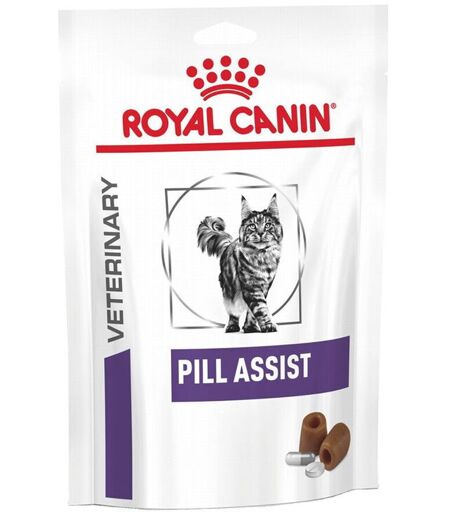 Royal Canin Veterinary Diets Cat Pill Assist – Enkel tablettskjuler for katter Royal Canin Veterinary Diets Pill Assist for katt er en smart løsning for å skjule tabletter i en velsmakende godbit. Den myke, formbare konsistensen gjør det enklere å gi medisin – også til kresne katter. Hvordan fungerer Royal Canin Pill Assist for katt? Godbiten kan formes rundt de fleste tabletter og gjør det lettere for at katten din aksepterer medisinen. I studier har 91 % av kattene tatt tabletten sin frivillig når den skjules i Pill Assist. I tillegg inneholder hver bit kun 3 kalorier og er beriket med vitaminer. Fordeler med Pill Assist for katt: Formbar konsistens: Dekker og skjuler de fleste typer tabletter. Høy aksept: 91 % av kattene tar tabletten sin frivillig. Kun 3 kalorier per bit: Tilpasset for daglig bruk. Beriket med vitaminer: For å støtte kattens allmennhelse. FAQ Passer Royal Canin Pill Assist for alle katter? Ja, Pill Assist er utviklet for å passe til de fleste katter og tabletter. Den gode smaken gjør det enkelt å gi medisin også til kresne katter.Hvordan gir jeg Royal Canin Pill Assist til katten min? Legg tabletten i godbiten. Form godteriet med hånden, bruk hånden som ikke har rørt tabletten. Gi den til katten din. F: ?45 g Husk at godbiter aldri skal være et alternativ til balansert kosthold – det skal alltid gis i tillegg som bonus eller belønning. Uansett hvor glad den firbente er i godbiter, er det du som eier som har ansvar for at dyret holder seg sunt og friskt. Se anbefalingene på pakken og husk at ingen dyr er like – tilpass inntaket etter kjæledyrets egne forutsetninger! ...