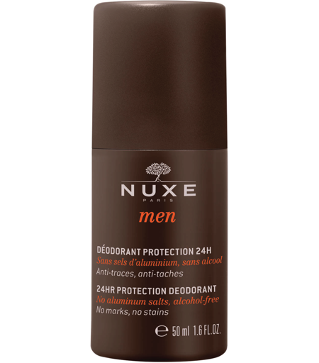NUXE MEN 24h Protection Deodorant er en roll-on deodorant til menn som gir opptil 24 timers beskyttelse. NUXE MEN 24h Protection Deodorant etterlater ingen hvite merker eller flekker og bidrar til å beskytte huden mot svettelukt i opptil 24 timer. Deodoranten har en maskulin duft av tre og krydder. Passer for alle hudtyper, også sensitiv hud. Med parfyme. 95 % ingredienser av naturlig opprinnelse. ...