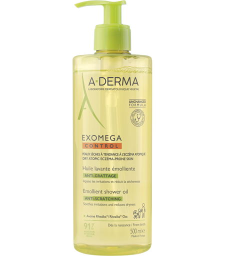 A-Derma Exomega Control Shower Oil er en dusjolje til ansikt og kropp med Rhealba havreekstrakt og Filaxerine (Omega-6 og B3-vitamin) som lindrer kløe, til tørr, irritert hud og atopisk eksem. A-Derma Exomega Control Shower Oil med ny og forbedret formel (bionedbrytbar formel) en mild vaskebase bestående av 91 % naturlige ingredienser som renser huden skånsomt og nøytraliserer vannets uttørrende effekt. Naturlig formulering med Rhealba havreekstrakt og Filaxerine (omega-6 og B3-vitamin) virker beroligende, mykgjørende og gjenoppbyggende. Oljen rengjør uten å irritere hudbarrieren og etterlater en tynn, beskyttende hinne på huden. Forlenger effekten av lotion, krem og balm. Egnet til daglig bruk for spedbarn, barn og voksne. Delikat duft. A-Derma har dokumentert effekt på tørr, veldig tørr, irritert, sart og skadet hud og atopisk eksem. Aderma er basert på en naturlig, plantebasert aktiv ingrediens, Rhealba® havren som er valgt ut blant mer enn 80 forskjellige havresorter. Det er klinisk dokumentert at Rhealba® havren har en særlig god virkning på sart, tørr, irritert og atopisk eksem. Havren inneholder ikke proteiner, gir ingen allergi. ...