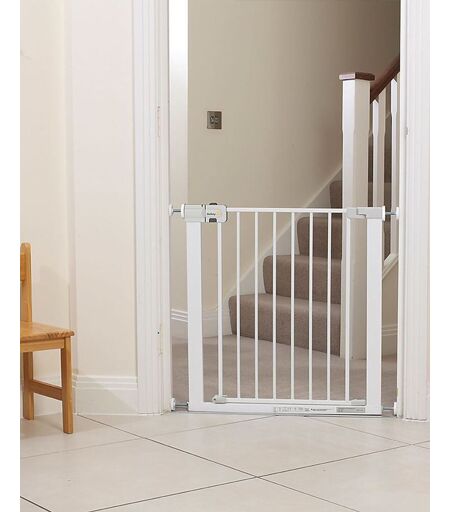 Easyclose Safety Gate White er en sikkerhetsgrind i et moderne design, som passer åpninger fra 73-80cm (eller opptil 136cm med forlengere). Grinden er enkel å bruk og kan åpnes fra begge sider. Dobbel låsemekanisme sikrer at barnet selv ikke får til å åpne grinden ...