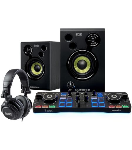 Den ideelle pakkeen for enhver aspirerende DJ. Hercules DJ nybegynner-sett inneholder alt du trenger for å mikse og skrape musikk. DJ nybegynner-settet består av: DJControl Starlight DJ-kontroller DJMonitor 32 bærbare skjermer og et par HDP DJ M 40.2-hodetelefoner. Starlight er en svært kompakt DJ-kontroller med berøringsfølsomme joggehjul RGB- pads og til og med en integrert hodetelefonutgang. DJMonitor 32 er perfekt for å overvåke miksene dine og gir uberørt lyd. HDP DJ M 40.2 hodetelefoner med svivelmekanisme på hodetelefonene slik at du kan overvåke mellom hodetelefonen og yttermiksen. Pakken inneholder også en kopi av Serato DJ Lite for å komme i gang rett ut av esken. ...