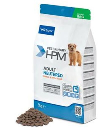 VIRBAC HPM NEUTERED ADULT - SMALL / TOY (1.5, 3 & 7 KG)Fullfôr til kastrerte voksne hunder(eller hunder med tendens til overvekt):• Små raser (< 10 kg), over 10 månederKastrerte hunder er disponert for overvekt og har ofte en økt appetitt. ...